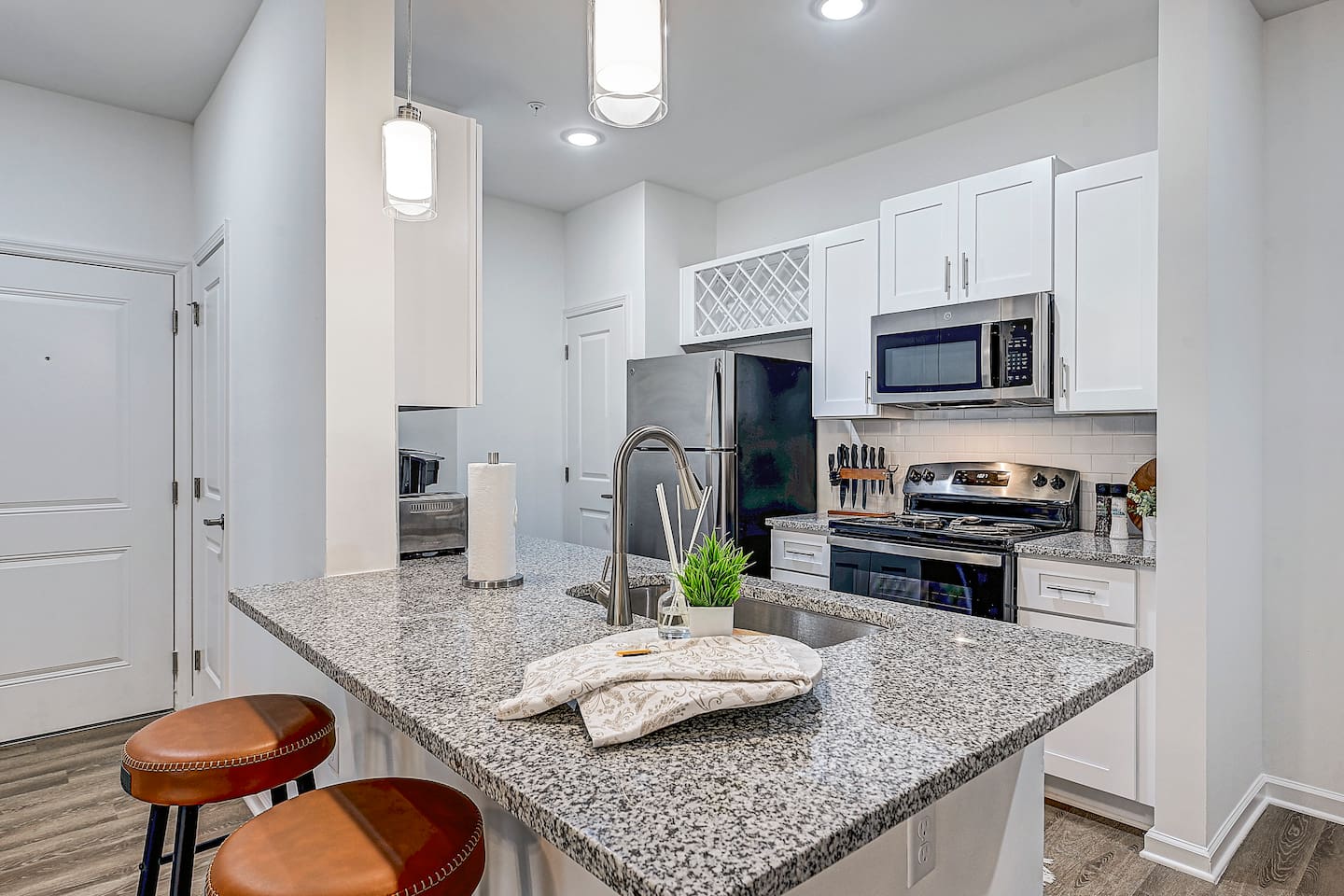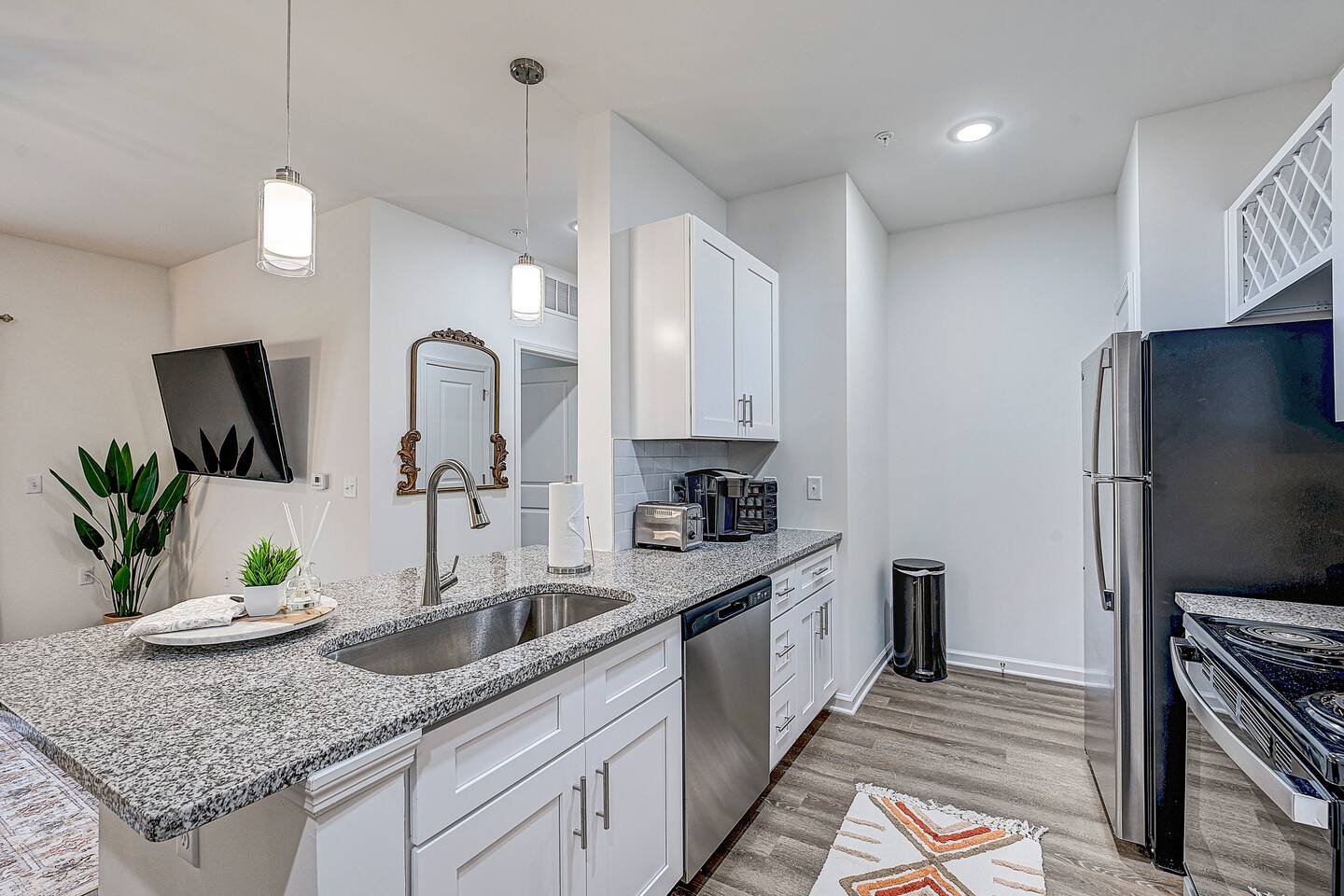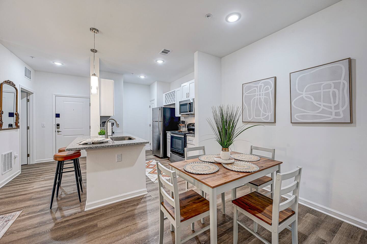 Relax and unwind in comfort! Apartment features all the amenities needed for your stay. Enjoy FREE UNLIMITED WiFi, Smart TV, In Unit laundry and private balcony. Guest will also have access to the pool area, gym and enjoy FREE parking. Bedroom features 1 Queen Bed 2nd Bed: Queen Air Mattress Available Laundry Room This unit is located on the 1st floor ***Not the listing for you? Check out our others listings by clicking the profile picture below.***