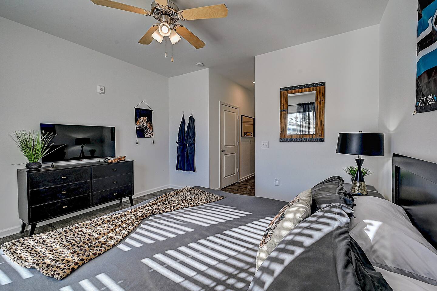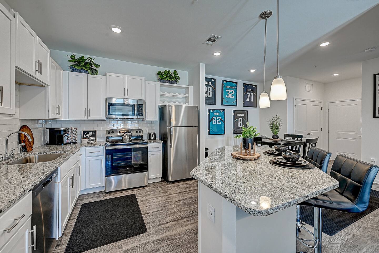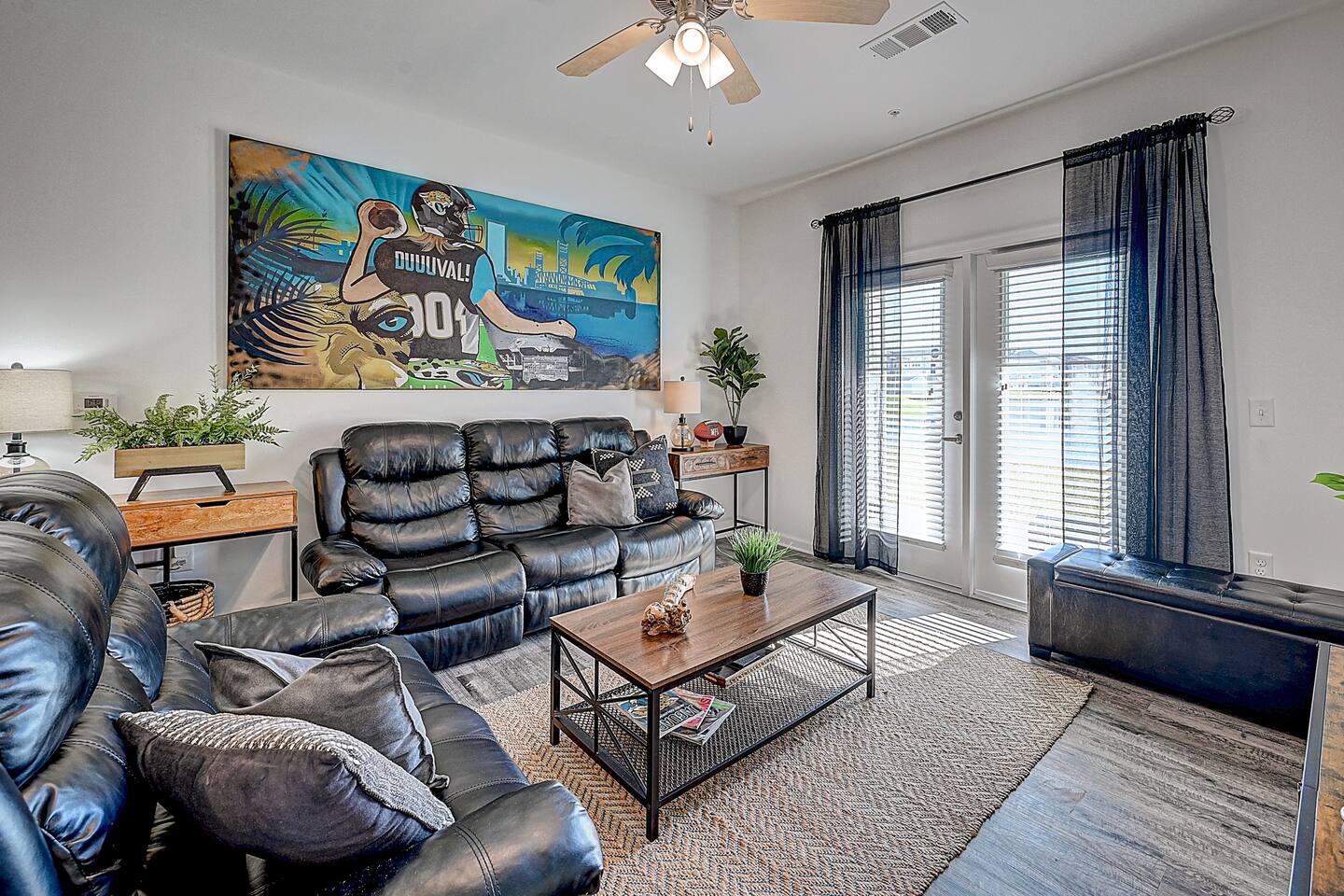 Unwind and Cheer the Jags on in Comfort! Apartment features all the amenities needed for your stay. Enjoy FREE & FAST UNLIMITED Wi-Fi, 75" Smart TV in living room & Smart TVs in bedrooms, In Unit laundry and relaxing balcony w/lake view. Guest will also have access to the shared pool area, gym and can enjoy FREE parking. Master Bedroom features 1 King Bed 2nd Bedroom feat. 2 Full Sized Beds Queen Air Mattress Available Laundry Room Two Full Baths in each room! Unit is located on 1st floor *Sofa Recliner Feature turned off. ***Not the listing for you? Check out our others listings by clicking the profile picture below.**