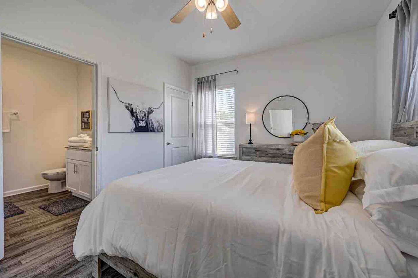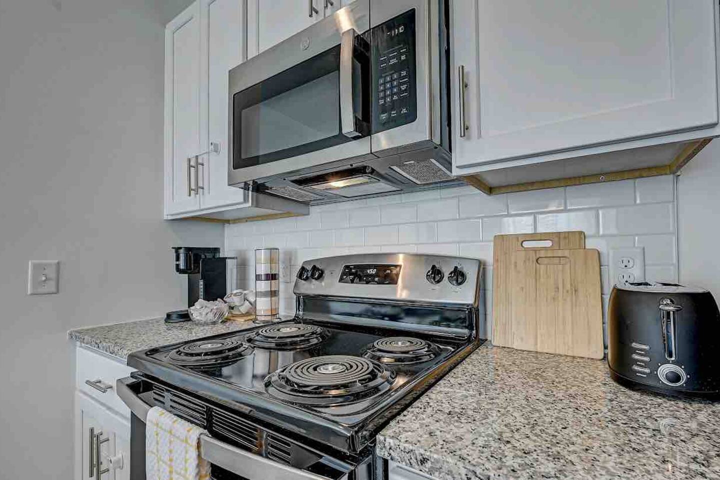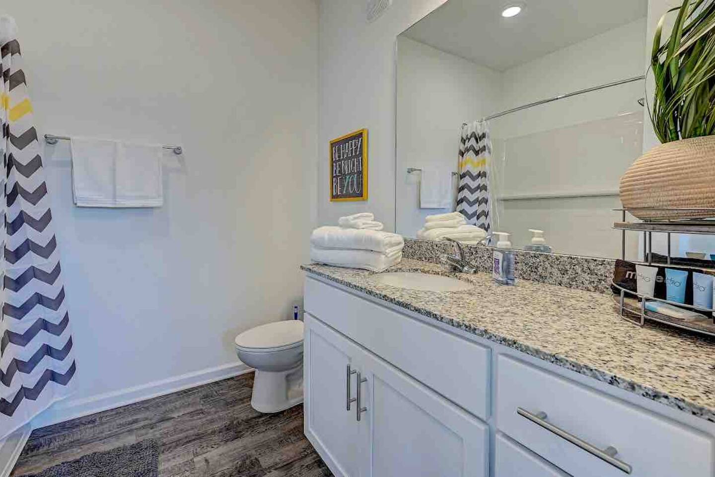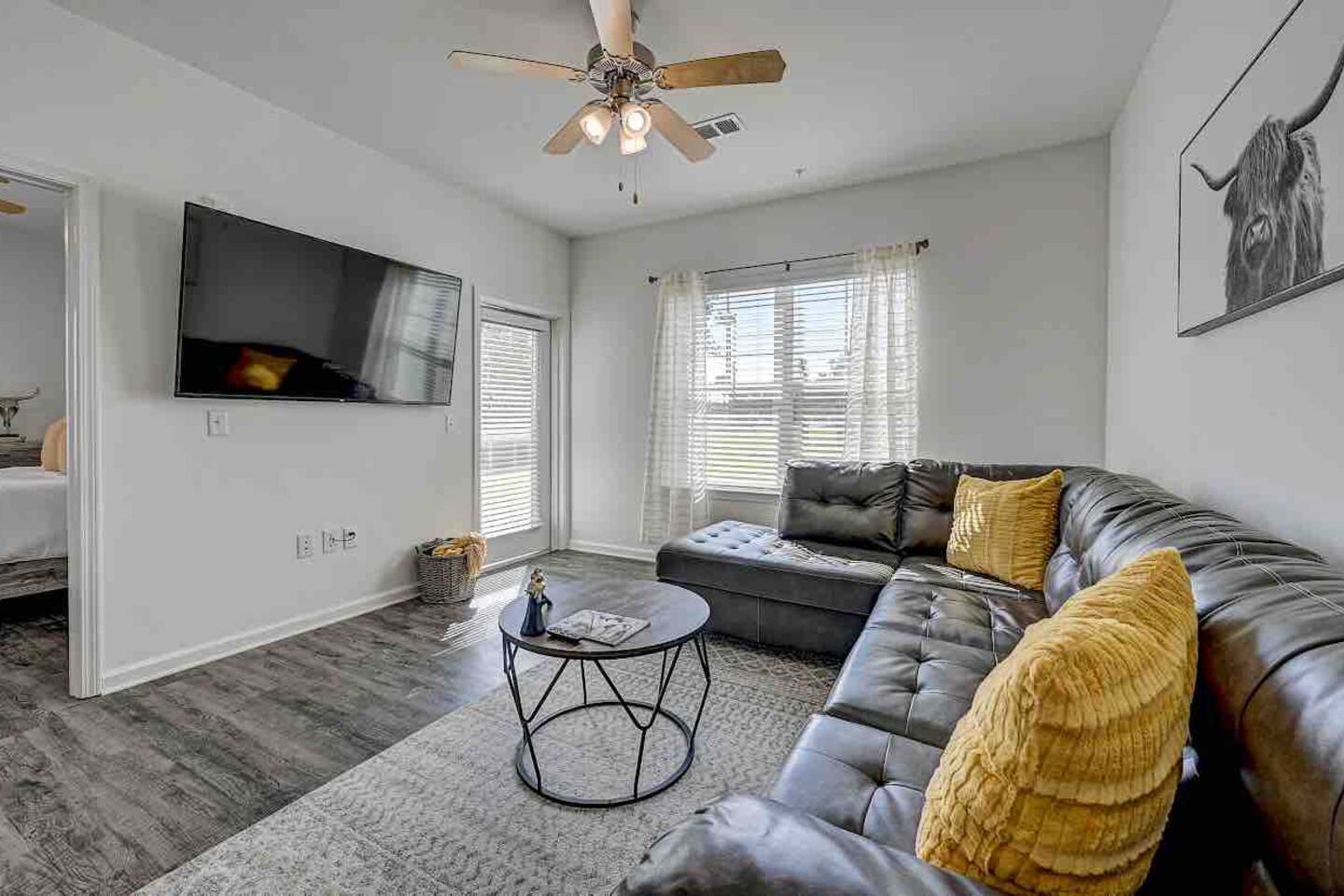 Relax and unwind in comfort! Apartment features all the amenities needed for your stay. Enjoy FREE UNLIMITED WiFi, 65" Smart TV, In Unit laundry and private balcony overlooking the resort style pool. Guest have access to the pool area, gym and enjoy FREE parking. Bedroom features 1 Queen Bed 2nd Bed: Queen Air Mattress Available Unit is located on the 1st Level