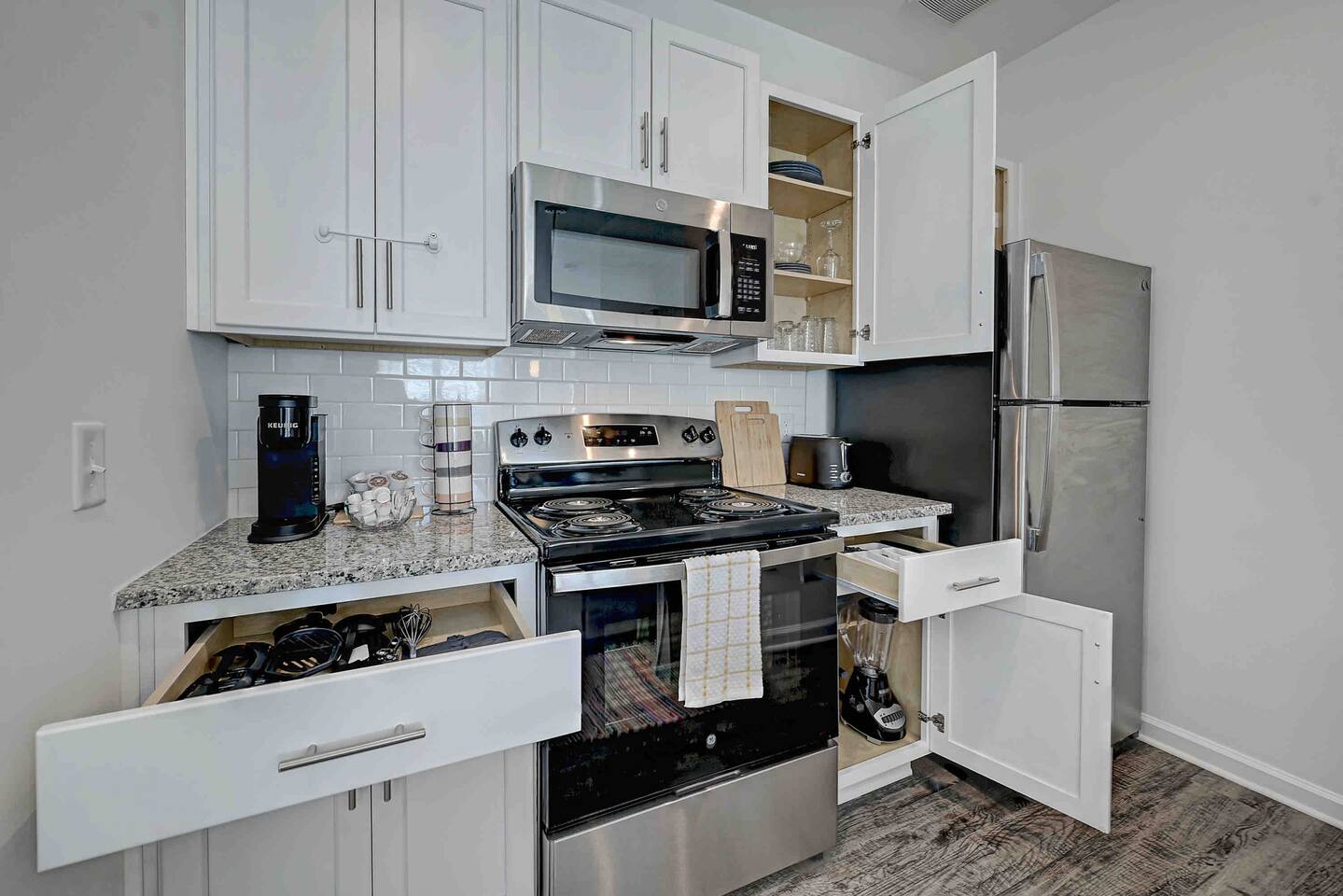 Guest will have access to Entire space! ***PERFECT for Short OR Long-term Stays!*** Kitchen ✔Bowls / Plates / Cups ✔Pans / Pots ✔Eating Utensils ✔Ice Maker ✔Wine Opener / Can opener / Measuring cup Laundry ✔Washer & Dryer IN UNIT ✔Washing Detergent ✔Ironing Board ✔Iron ✔Broom / Mop ✔Air Mattress Bathroom ✔Quality Towels / Wash Clothes ✔Hand Soap ✔Make Up Towel Emergency Items ✔ Fire extinguisher ✔First aid kit