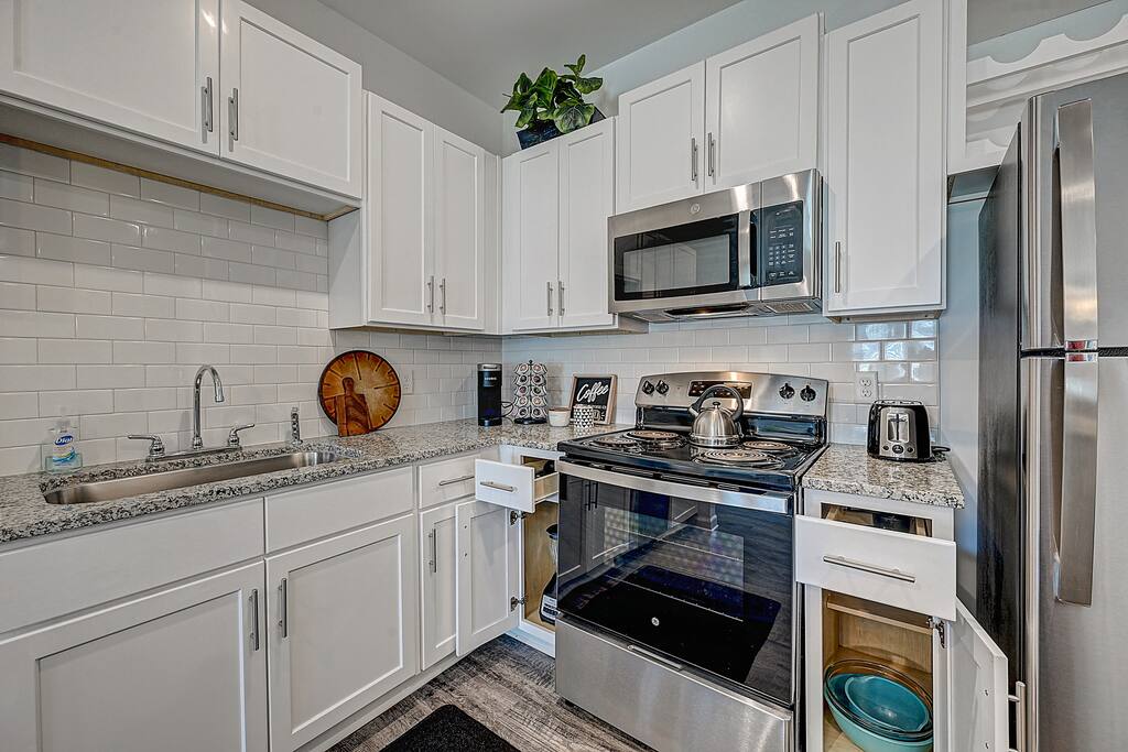 Guest will have access to Entire space! ***PERFECT for Short OR Long-term Stays!!!*** Free Parking Available Kitchen ✔Bowls / Plates / Cups ✔Pans / Pots ✔Eating Utensils ✔Ice Maker ✔Wine Opener / Can opener / Measuring Cups Laundry ✔Washer & Dryer IN UNIT ✔Washing Detergent ✔Ironing Board ✔Steamer ✔Iron ✔Broom / Mop ✔Air Mattress Bathroom ✔Quality Towels / Wash Clothes ✔Hand Soap ✔Shampoo / Conditioner ✔Make Up Towel Emergency Items ✔ Fire extinguisher ✔First aid kit