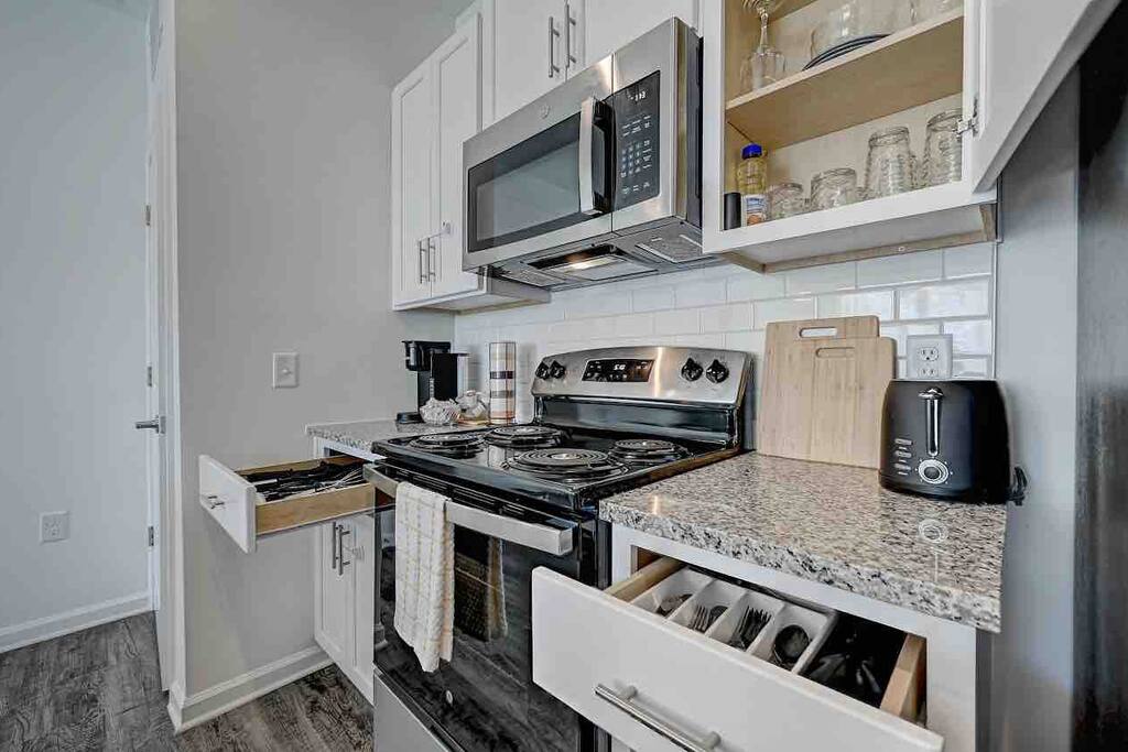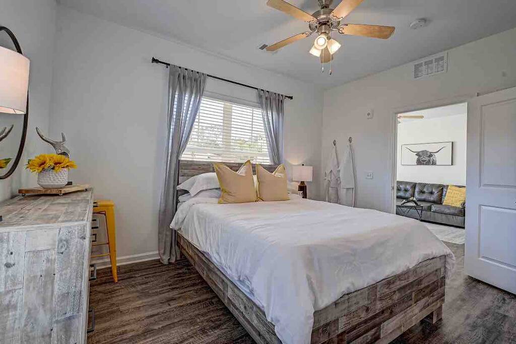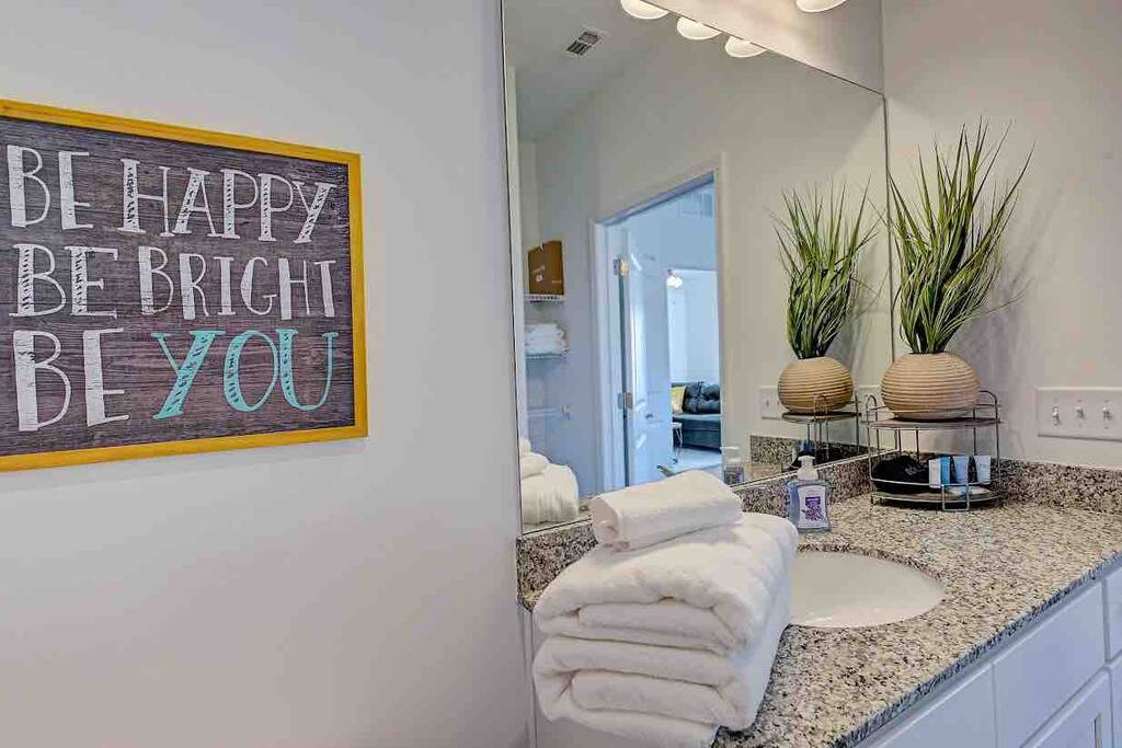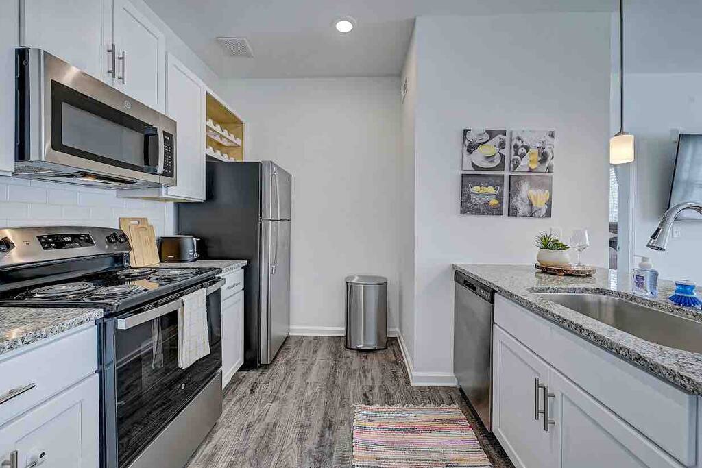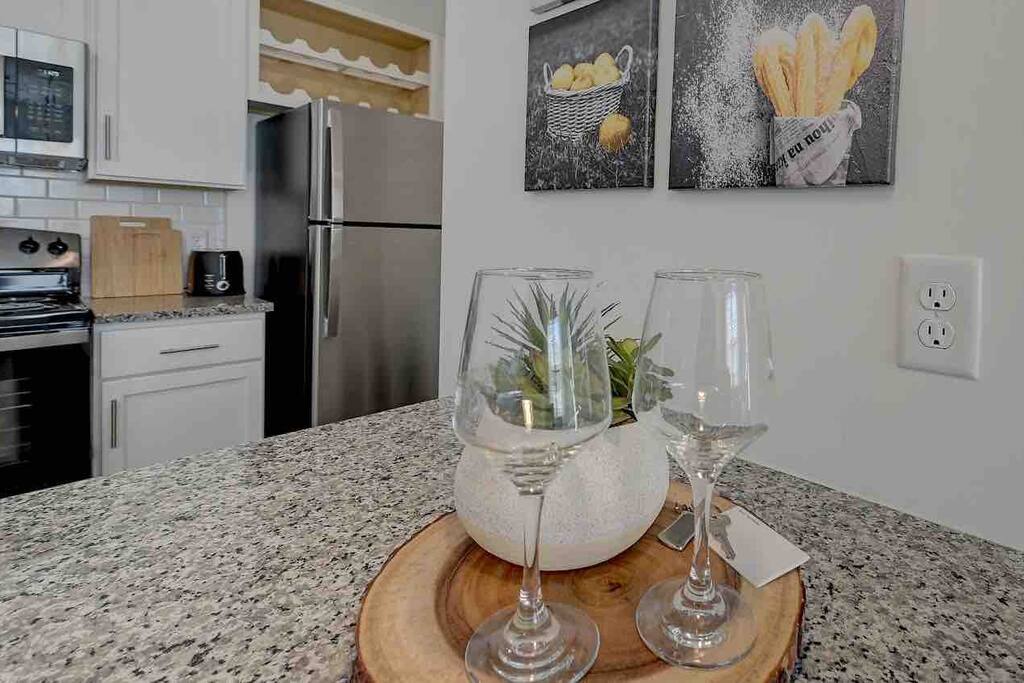 Relax and unwind in comfort! Apartment features all the amenities needed for your stay. Enjoy FREE UNLIMITED WiFi, 65" Smart TV, In Unit laundry and private balcony overlooking the resort style pool. Guest have access to the pool area, gym and enjoy FREE parking. Bedroom features 1 Queen Bed 2nd Bed: Queen Air Mattress Available Unit is located on the 1st Level